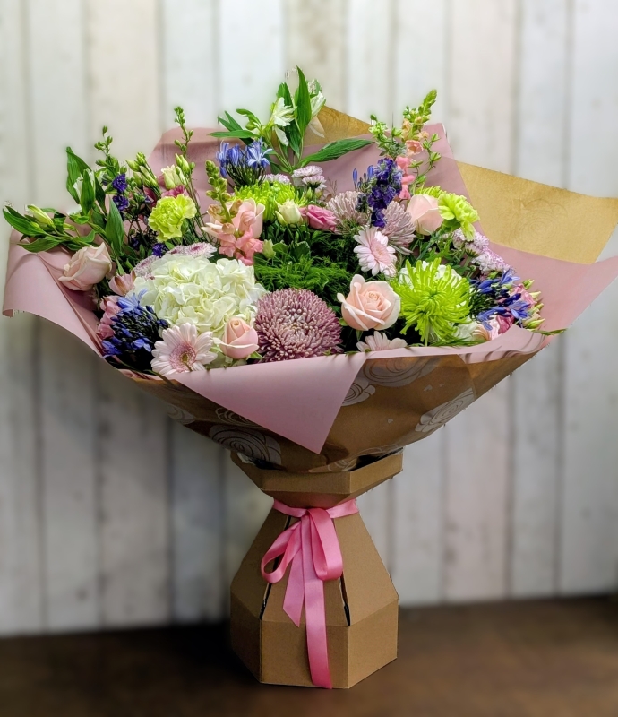 Fresh flowers received daily from our local wholesaler. As we work with the freshest products it may happen that certain items are unavailable due to supply issues or seasonal availability. That being the case we will substitute where necessary with a similar product or suitable alternative.