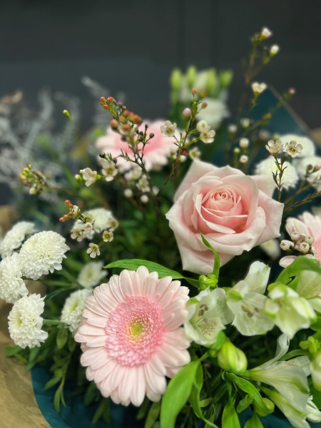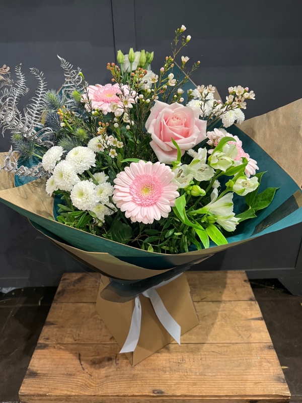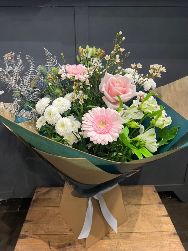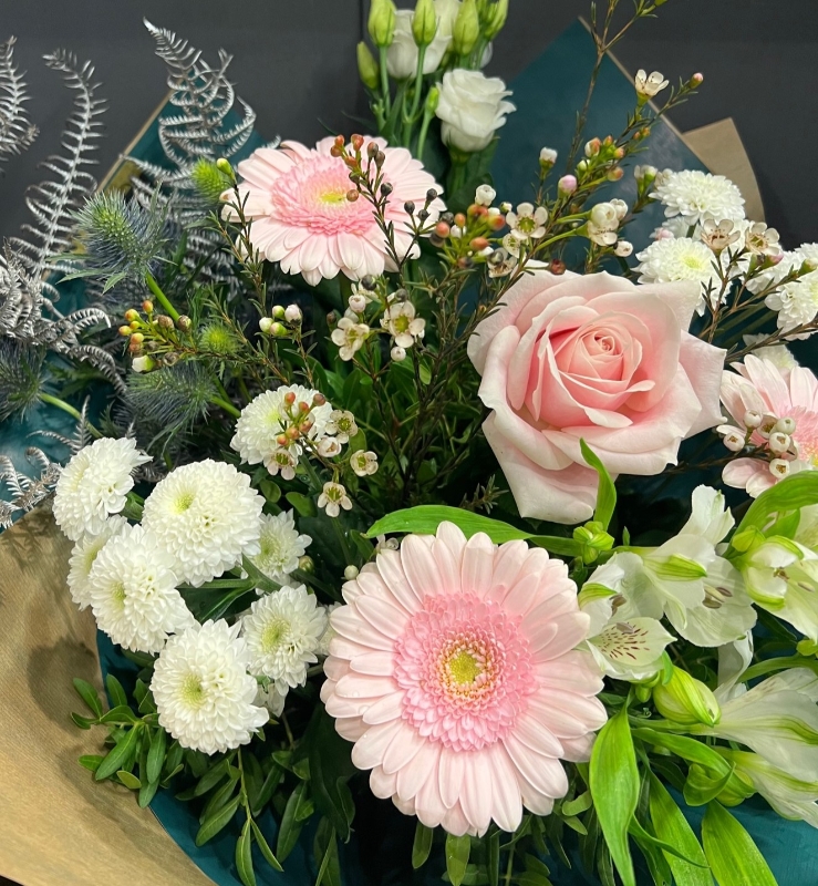 Fresh flowers received daily from our local wholesaler. As we work with the freshest products it may happen that certain items are unavailable due to supply issues or seasonal availability. That being the case we will substitute where necessary with a similar product or suitable alternative.