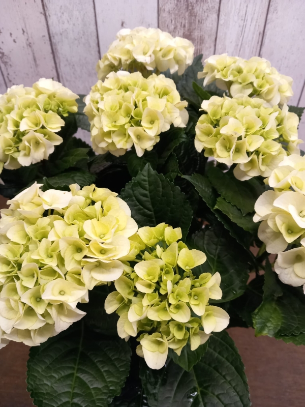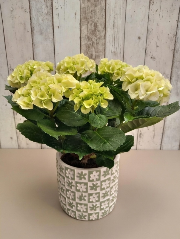 Gorgeous pale green Hydrangea plant, in a ceramic container.